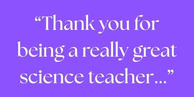 "Thank you so much for all of the very fun science lessons ... you're one of the very few teachers who've impacted my life. You are one of the teachers who make a difference in a student's life."